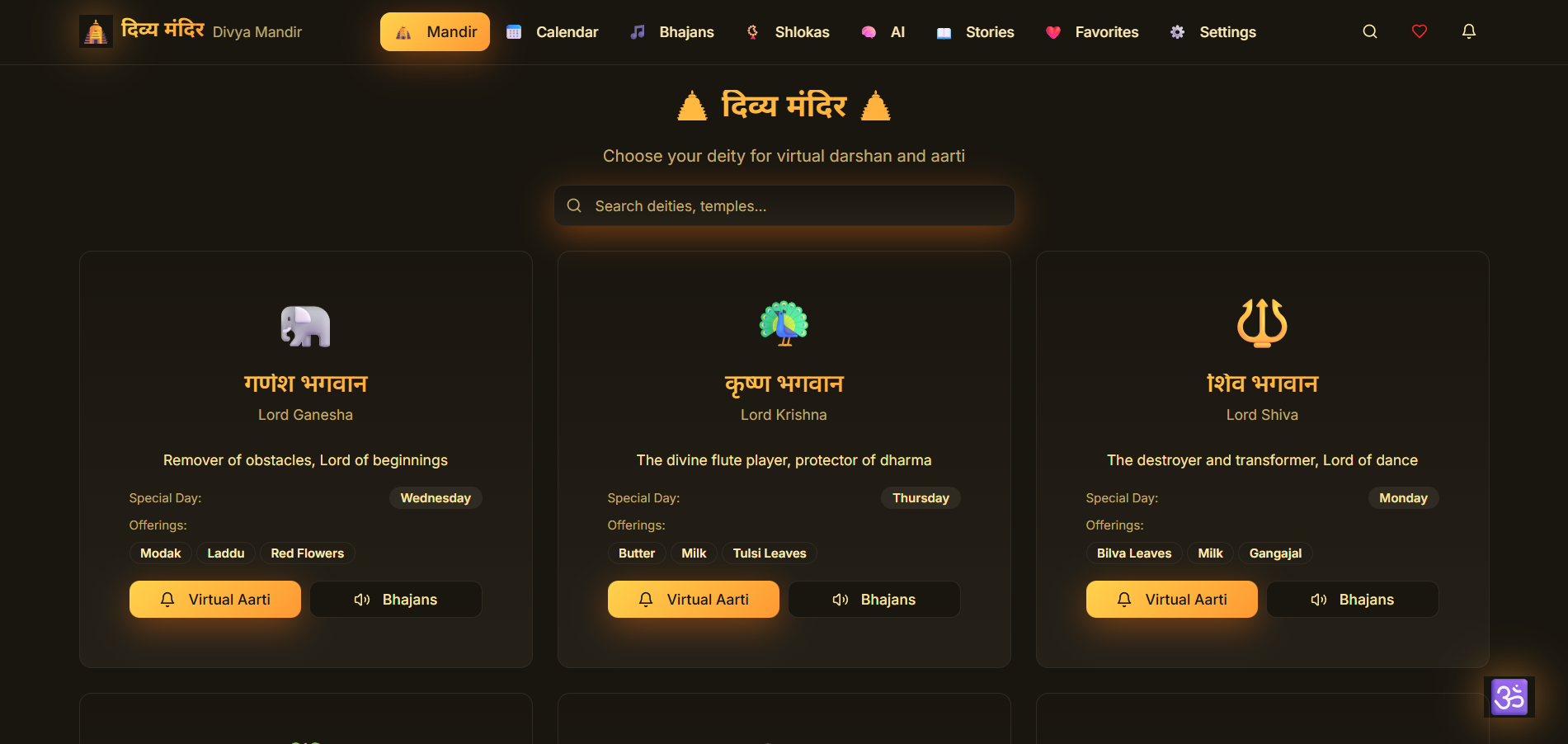 information, or virtual darshan. The design might reflect traditional Indian architecture and