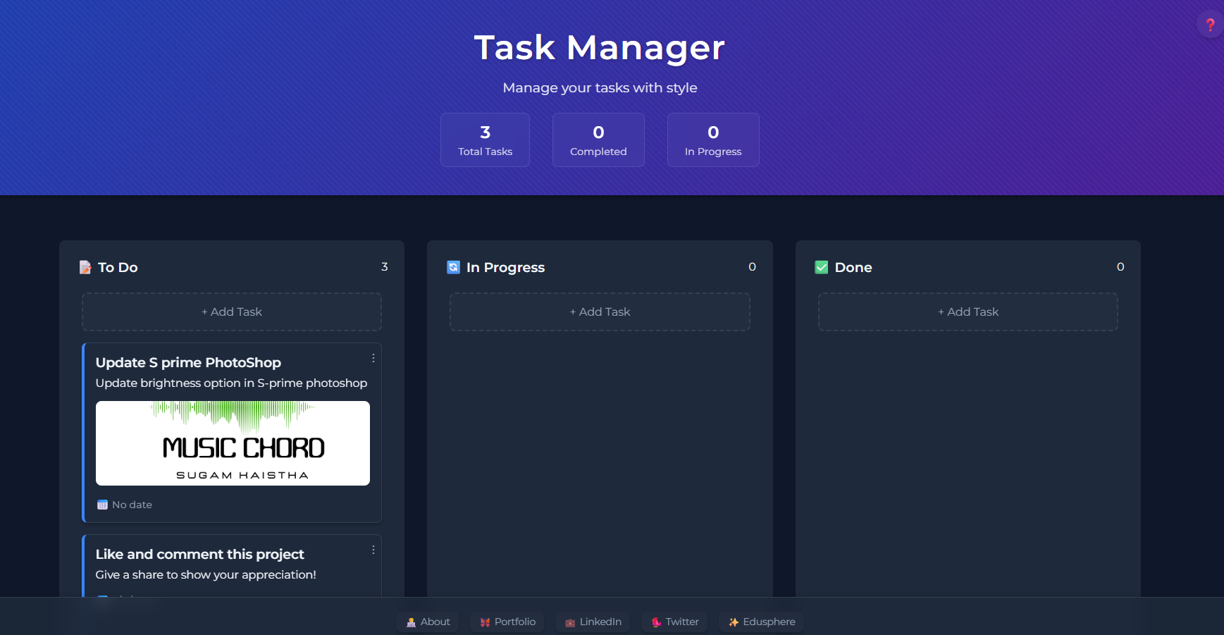 Task Manager with save your task, add reminder, different section for different